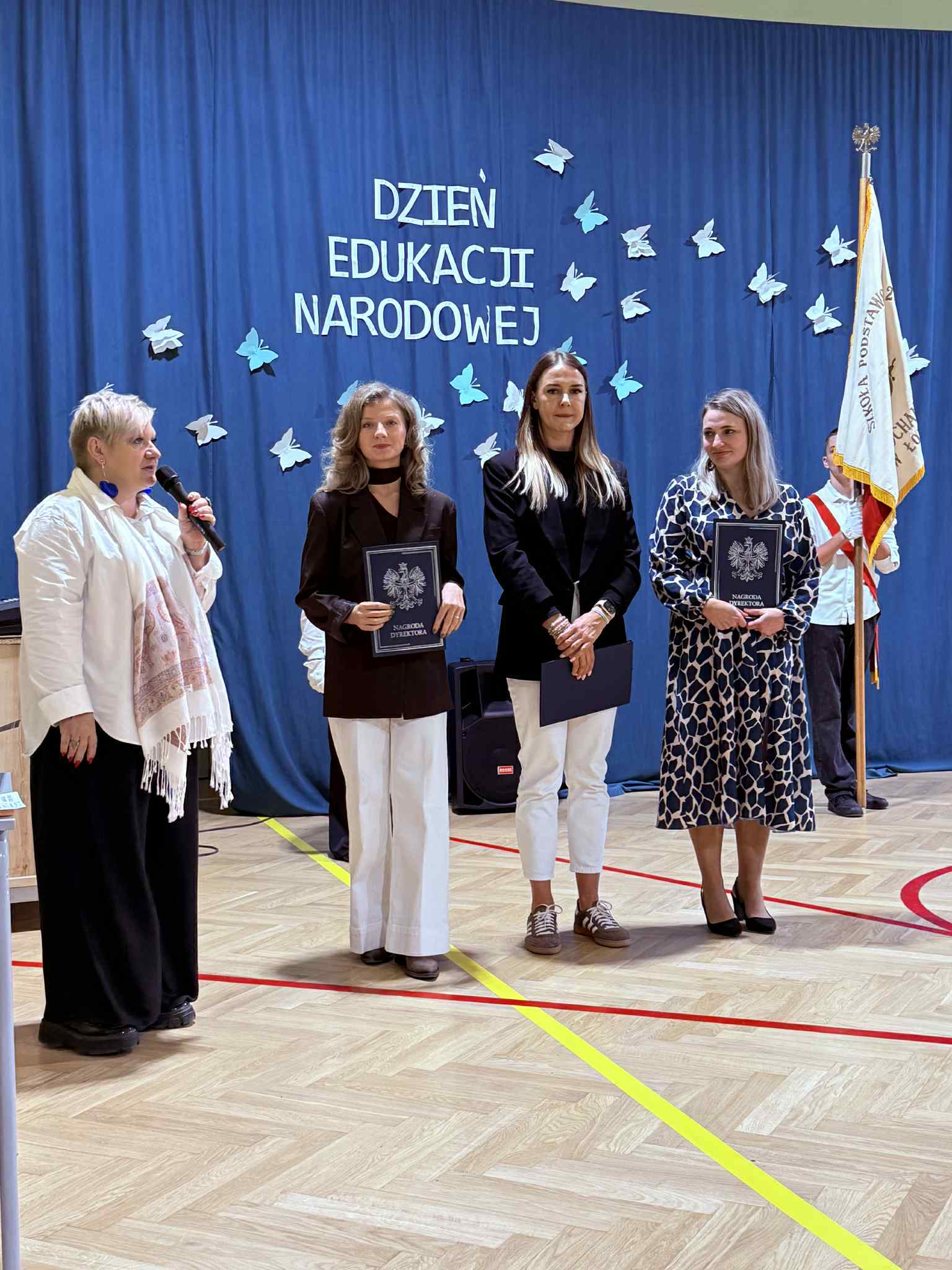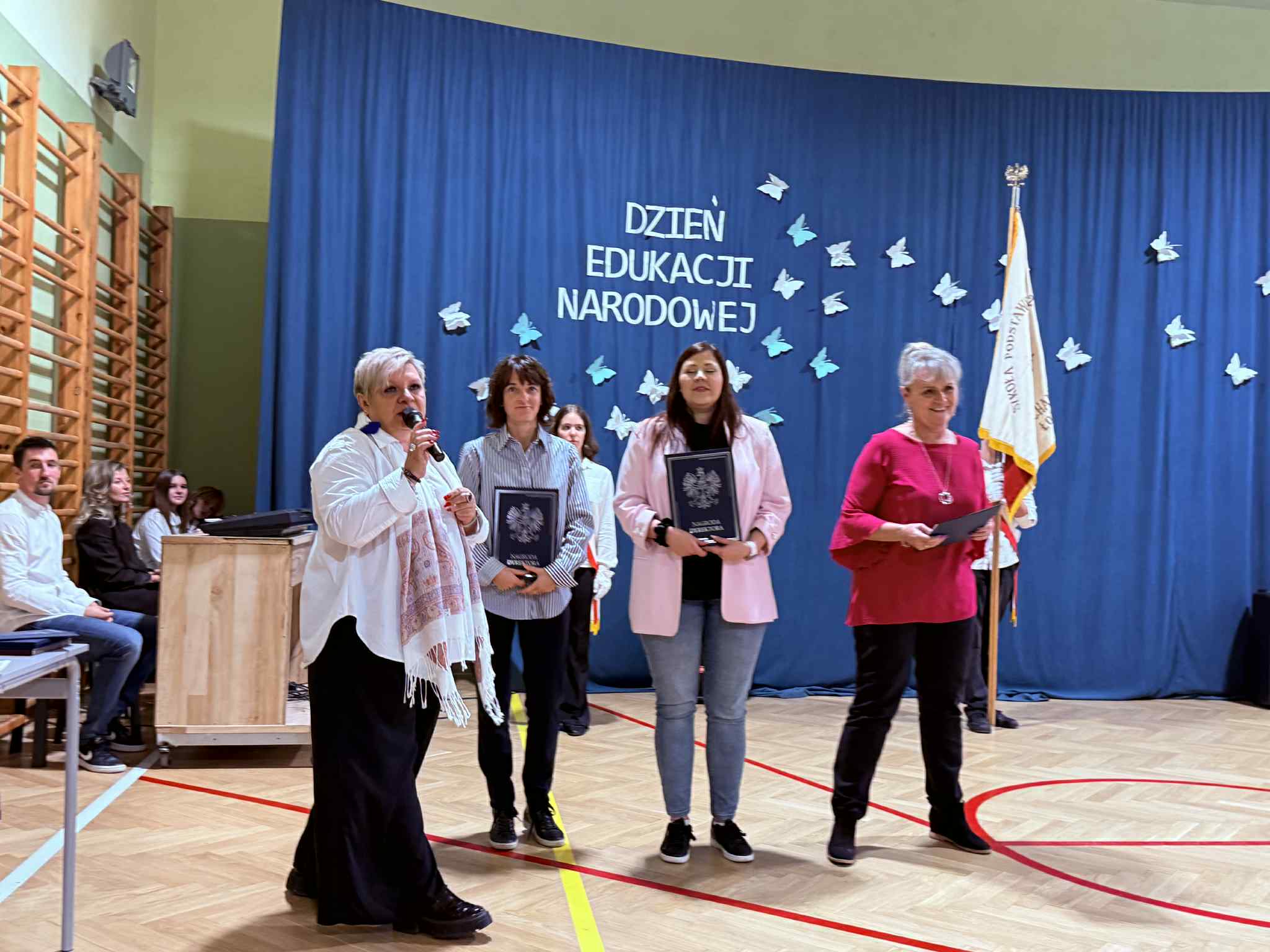 Podczas akademii wręczono nagrody i podziękowania dla nauczycieli oraz pracowników szkoły za szczególne osiągnięcia dydaktyczne i wychowawcze. Słowa uznania i życzenia popłynęły od Dyrekcji, Rodziców oraz Samorządu Uczniowskiego, którzy podkreślili znaczenie pracy nauczycieli i ich wpływ na rozwój młodych pokoleń.
