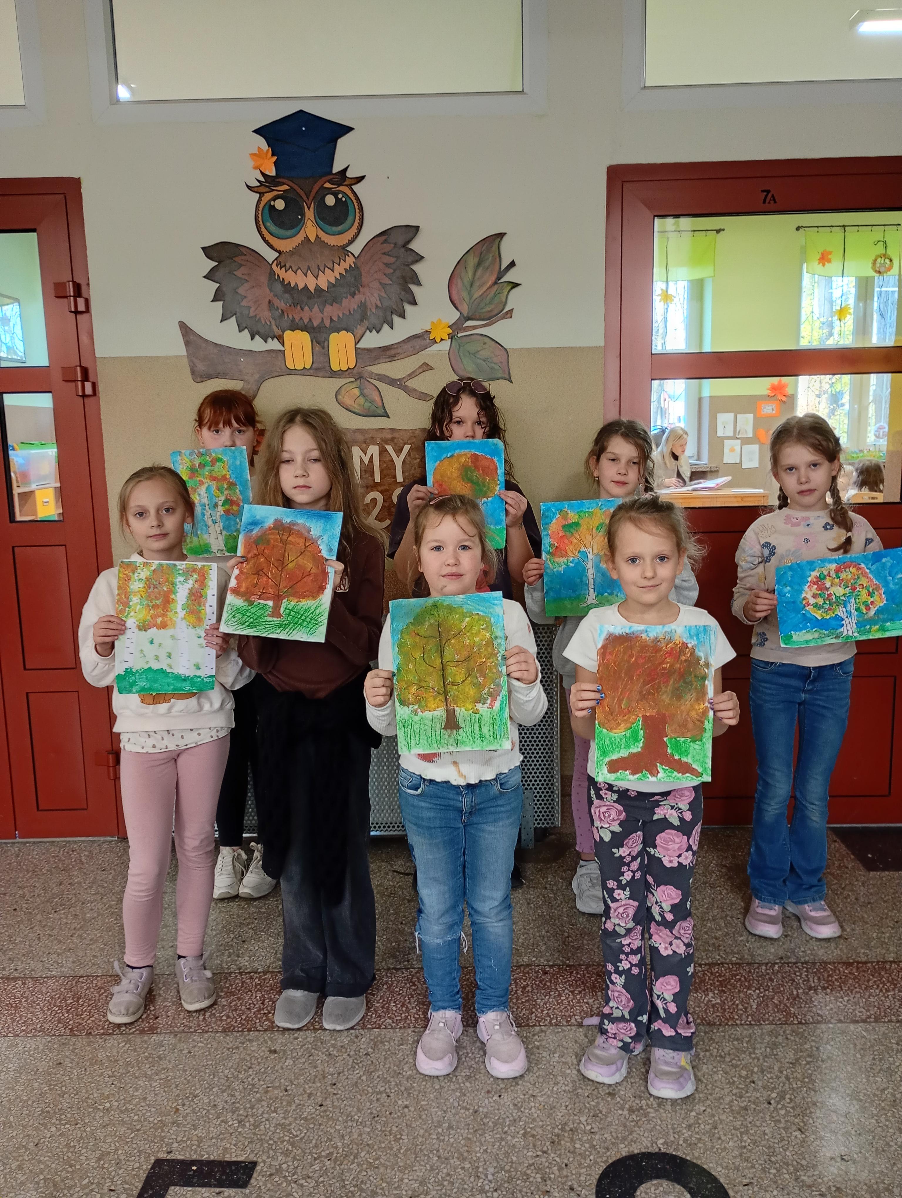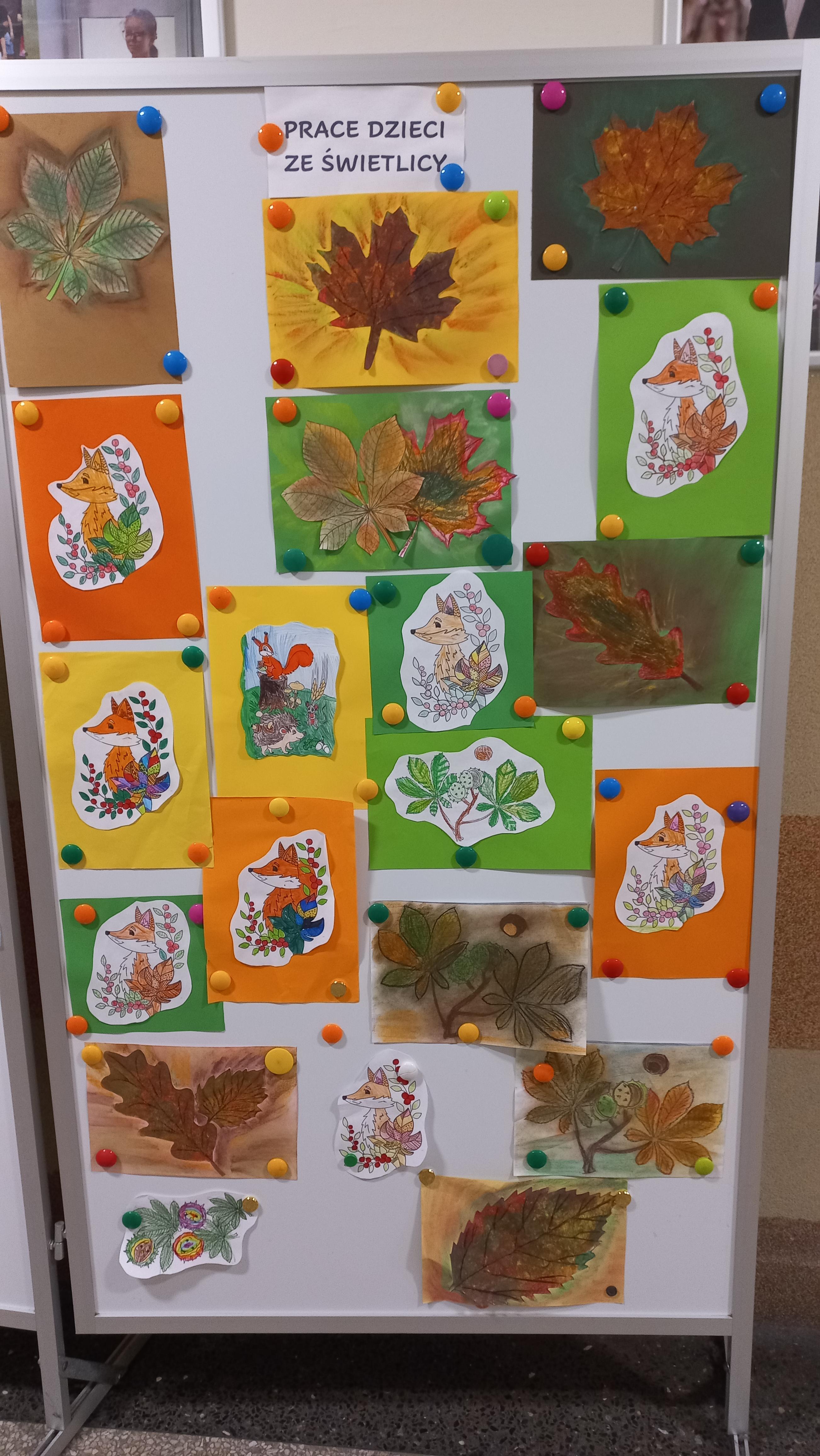 Jesień w naszej świetlicy była niezwykle twórczym i barwnym czasem. Uczniowie z ogromnym zaangażowaniem wykonywali różnorodne prace plastyczne inspirowane tą wyjątkową porą roku. Kolorowe liście, jesienne pejzaże oraz dekoracje tworzone z naturalnych materiałów wypełniły całą świetlicę, nadając jej przytulny, ciepły klimat. Każdego dnia było u nas kreatywnie, radośnie i bardzo kolorowo.