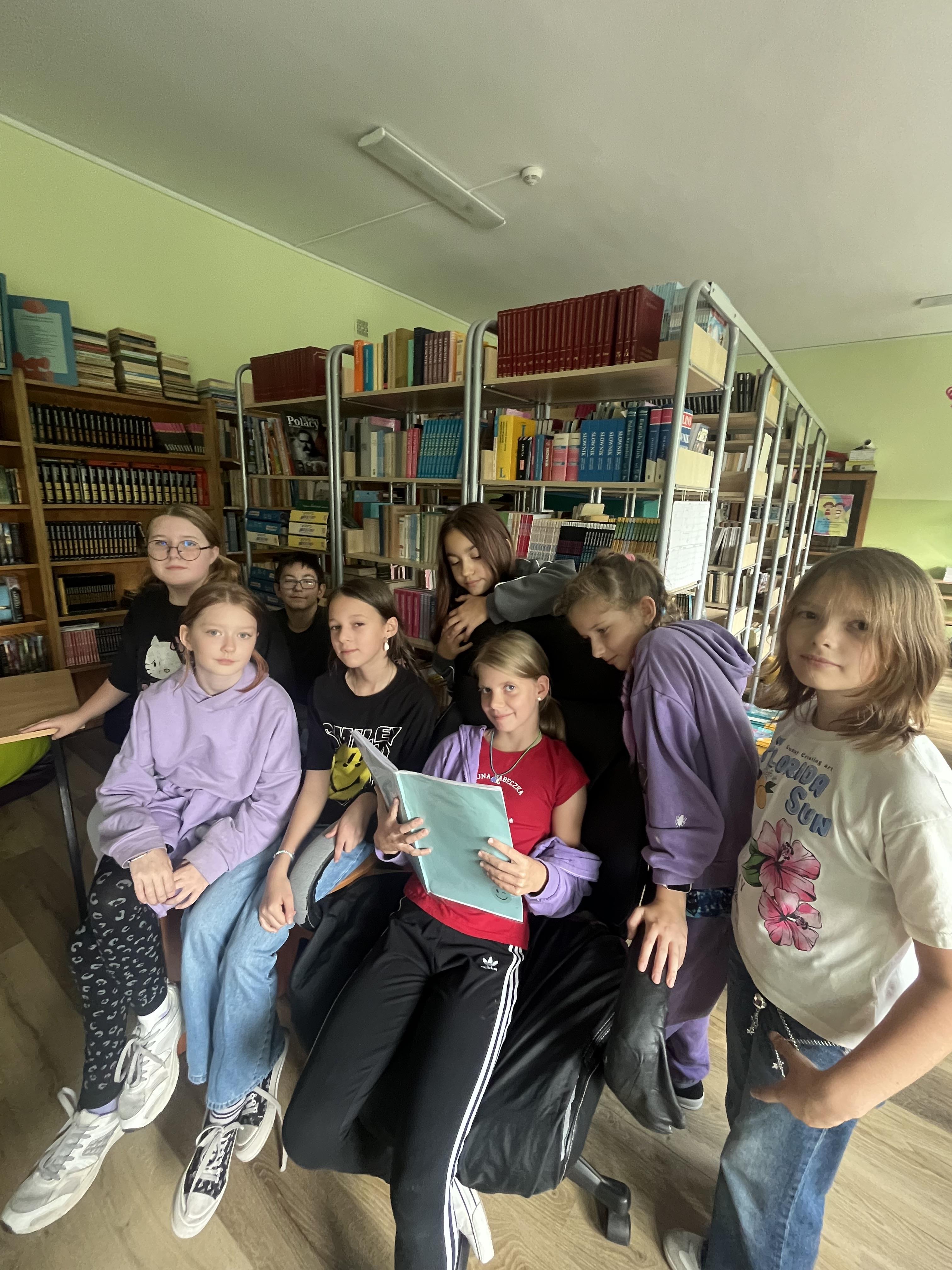 Lekcja języka polskiego w wyjątkowym miejscu – klasa 5b w bibliotece szkolnej