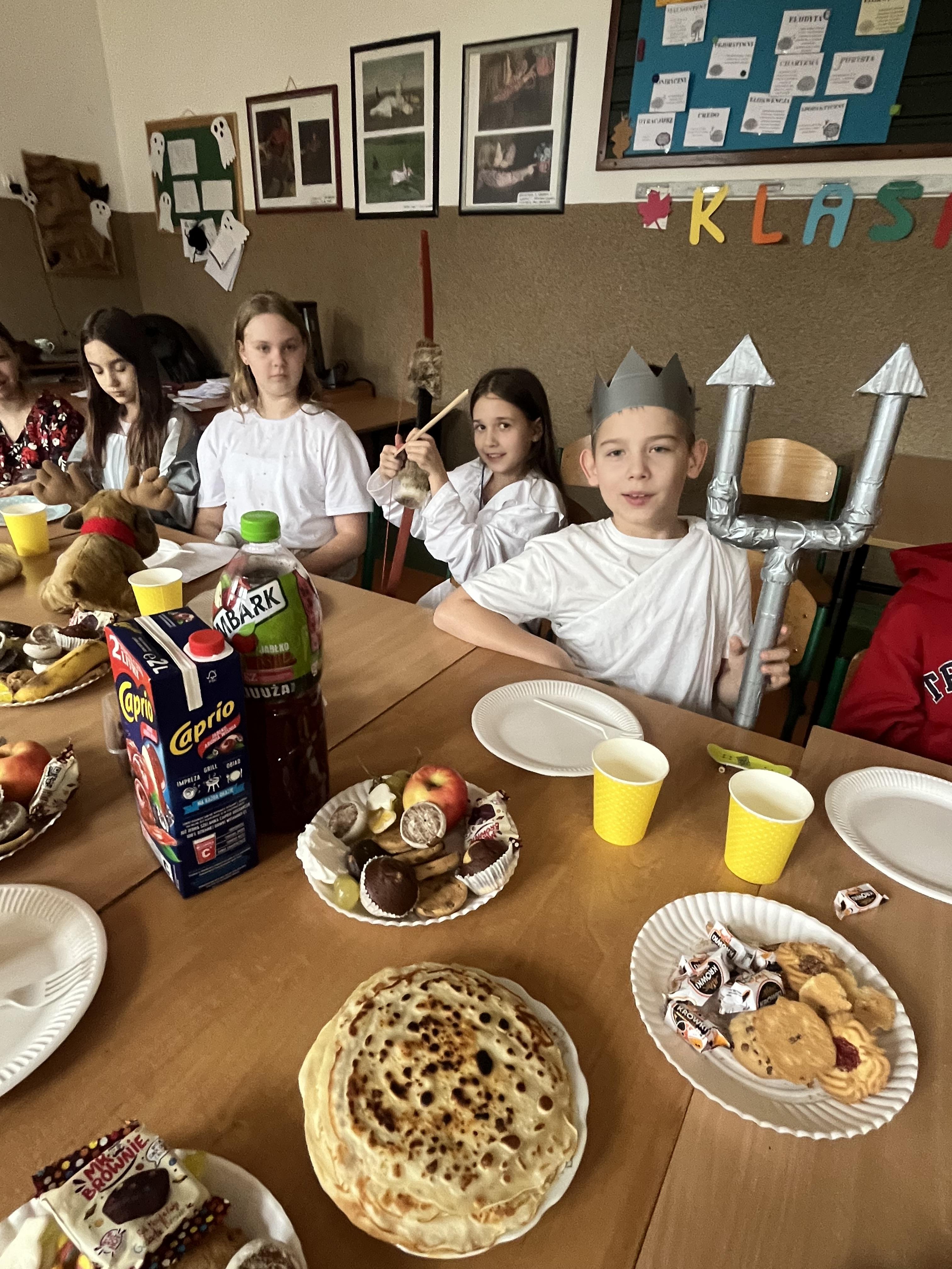 W minionym tygodniu uczniowie naszej szkoły przenieśli się wprost na mityczny Olimp. Podczas wyjątkowej lekcji języka polskiego odbyła się uczta olimpijska, w trakcie której dzieci wcieliły się w role greckich bogów i bohaterów.